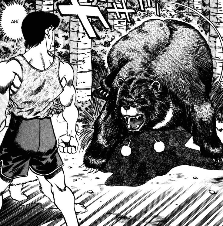 Um dos momentos mais famosos do anime acontece quando Mamoru Takamura enfrenta um urso na montanha durante um treinamento.